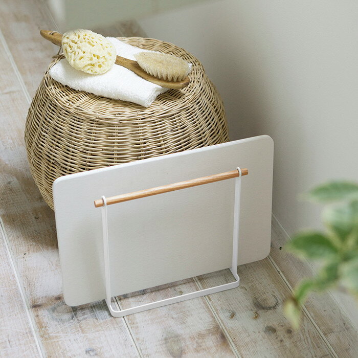 バスマット収納 珪藻土 バスマットスタンド tosca トスカ ホワイト 03284 山崎実業 バスマット干し 立て掛け 足拭きマット 天然木 スチール