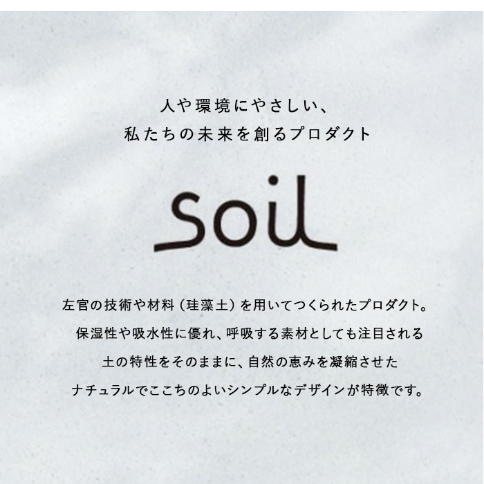 お正月 初売り 初詣 お年玉 成人の日 成人式 節分 バレンタインデー 桃の節句(ひなまつり) ホワイトデー 春物入荷 お花見 入学式 ゴールデンウィーク 母の日 衣替え 父の日 梅雨 夏物入荷 山開き 海開き 七夕 お中元 暑中お見舞い 夏休み 花火大会 盆踊り 夏祭り 秋物入荷 防災 敬老の日 ハロウィン 運動会 文化祭 学園祭 お歳暮 冬物入荷 クリスマス プレゼント 贈物 贈り物 ギフト お返し 引っ越し祝い 新生活 お祝い 内祝い 出産祝い 引っ越し祝い 引越し祝い 引越祝い 新築祝い 成人祝い 卒業祝い 就職祝い 合格祝い 入園祝い 入学祝い 進学祝い 結婚祝い 婚約祝い 退院祝い ボーナス祝い 七五三祝い 退職祝い 還暦祝い 長寿祝い 誕生日 お誕生日 大掃除ITEM DETAILSブランド名soil(ソイル)商品名soil ソイル BATH MAT商品説明・保湿性や吸水性に優れ、呼吸する素材、珪藻土(けいそうど)を生かしたプロダクトで注目を集めるsoil(ソイル)。