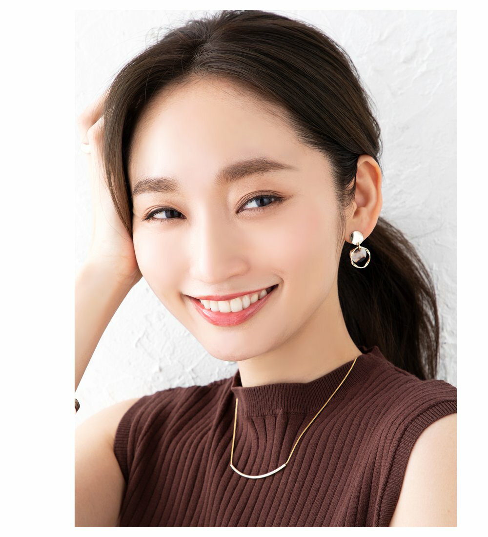 ゆがみを加えた艶やかなメタルパーツと、小さなマーブルプレートがコンビになったピアス。