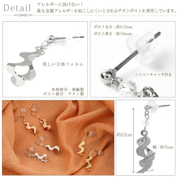 《プラスターのジュエリーは様々な贈り物にご利用頂けます》 店舗名Jewelry Studio PLUSTER ジュエリースタジオプラスター 性別女性 一部男性 兼用年齢10代 20代 30代 40代 50代 60代 70代 80代用途プレゼント ギフト 贈り物 お返し お礼 お祝い 記念品 サプライズシーン誕生日 バースデー バースディ ご褒美 記念日 結婚記念日 結婚 5周年 10周年 20周年 スイートテン バレンタイン バレンタインデー バレンタインデイ ホワイトデー ホワイトデイ 母の日 クリスマス Xmas ペア カップル お揃い デート パーティ パーティー 女子会 入学式 卒業式 成人式 小学校 中学校 高校 大学 合格祝い 社会人 就職祝い 出産 出産祝い 結婚式 引き出物 引出物 結婚内祝い 結婚祝い 金婚式 銀婚式 還暦 退職祝いこんな想いでありがとう ごめんね おめでとう おつかれさま ご苦労さま 大好き 愛してる 二人だけの メッセージこんな方に自分 彼女 妻 奥さん 嫁 友達 親友 ママ ママ友 お母さん 母 母親 両親 子供 娘 姉妹 おばあちゃん 祖母 先生 職場 先輩 後輩 同僚 新婦 新郎 彼氏喜びポイントシンプル 大人 可愛い かわいい 人気 お揃い 綺麗 キラキラ おしゃれ お洒落 トレンド おすすめ 上品 上質 高級 プチプラで高見え 1000円ポッキリ ぽっきり アクセント 定番 大ぶりチタンポスト アレルギー対策 アレルギー防止 ウェーブ 揺れる ホワイトゴールド イエローゴールド ピンクゴールドピンクゴールドはこちらイエローゴールドはこちら サイズポスト太さ約0.7mmポストの長さ約10mm全長約3.2cm最大幅約7mmカラーホワイトゴールド付属品シリコンキャッチ専用ポーチ色違いのご案内ピンクゴールドイエローゴールド備 考モニターの表示について:お客様のお使いになるモニターの設定により見え方が異なる場合がございます。