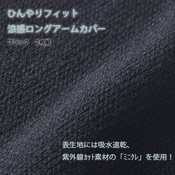 セルヴァン ひんやりフィット涼感ロングアームカバー ブラック 2枚組【アームカバー・日焼け対策・涼感】