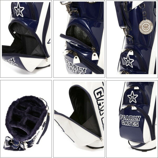 ABOUT PEARLYGATES ■ Information □名称:パーリーゲイツニュースマイルキャディバッグ □素材:エナメルタイプ □仕切り:6分割・セパレーター内蔵モデル □金属製ネームプレート付属 本体価格:税込\63,800(\58,000税抜) 製造元:株式会社グルーブアンドスポーツ ■ Staff Comment ●人気NO.1のロングセラー・バーリーゲイツ・スマイルシリーズのキャディバッグがますます魅力的になって新登場です!。